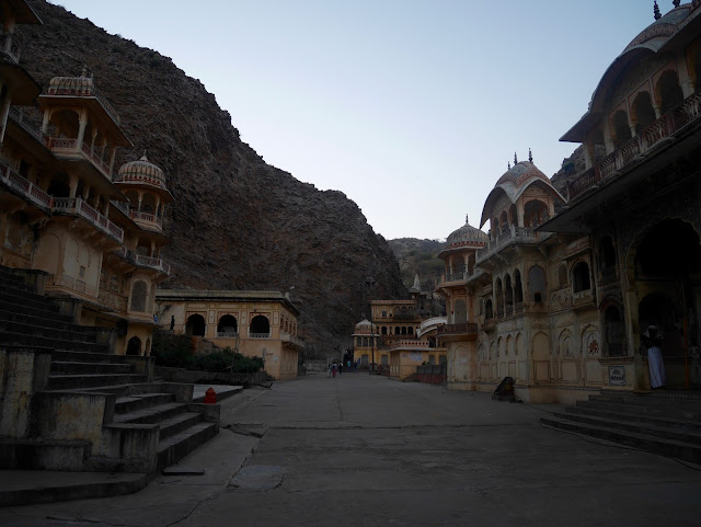 There was a long and winding road going to the mountains from the end of the stairs after the last temples. we walked on it a bit as it was heading to the sun temple. It was already sunset so we went back down. What I read later, this road actually goes to Jaipur through the old city gate. It's quite a hike but apparently well worth it when coming during daytime.